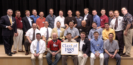 1985 - 20 Year Reunion - Top row - left to right - Jim Klimas, Mike Boynton, Don Savery, Jim McNaught, Dino Mancini, Bob Gatoreaux, Bill Petrusiak, Rob Giovaniello, Joe Nedder, Sean Boulger, Mark Farley, Frank Reilly, Ed McNeil, Patrick Ennis, Brian Allsop.