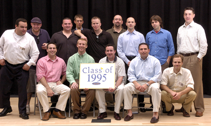 1995 - 10 Year Reunion - Standing - left to right - Darren Hasenjeager, Kevin Howard, Richard Jeanetti, Ben Boule, John Wheatley, Brandon Smith, Joe Ciollo, Zack Horvett, Dave McDonough.